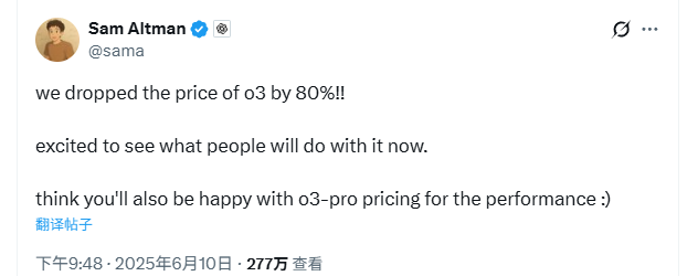 OpenAI CEO萨姆·奥尔特曼(Sam Altman)在社交平台上表示:“我们将o3的价格下调了80%富邦配资,很期待人们会用它来做什么。”