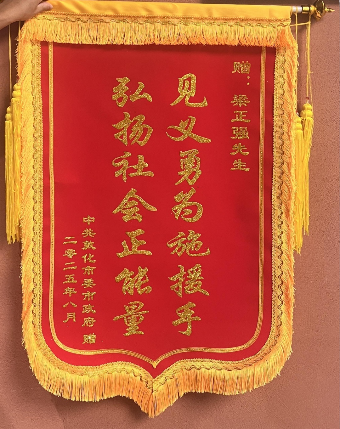 为褒奖凡人善举,弘扬社会正气,传播见义勇为正能量,阿里公益天天正能量联合城市晚报、上游新闻、深圳报业集团读特客户端,为梁正强颁发正能量特别奖10000元。